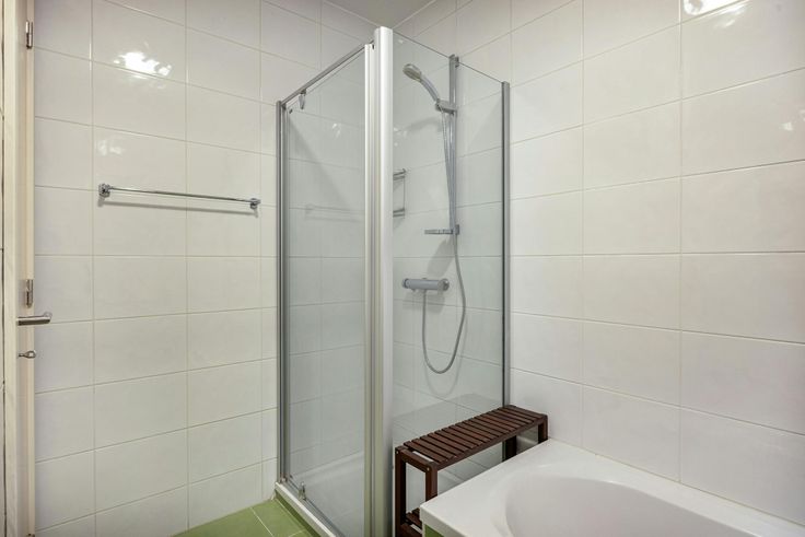 - badkamer met enkele wastafel, douche, bad en toilet