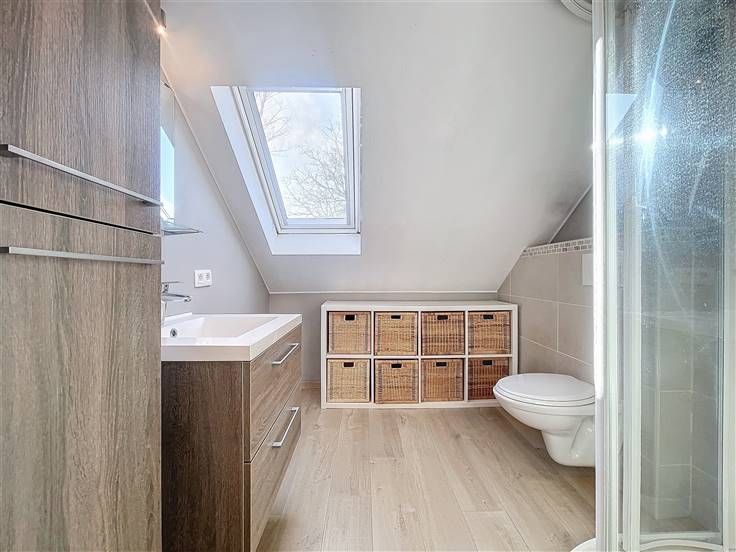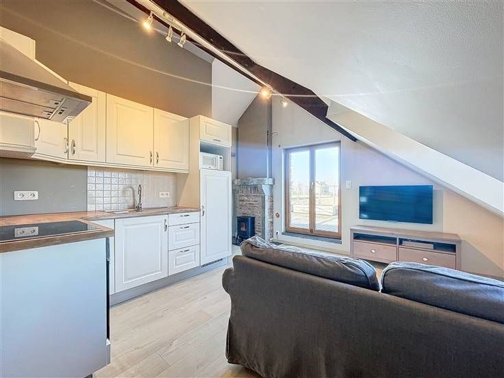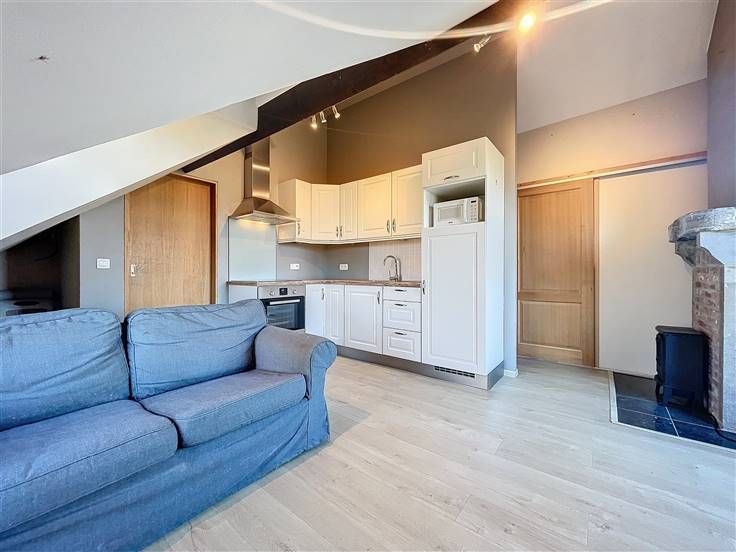 Sorry er is geen nederlandse vertaling beschikbaar. Ce charmant studio se situe dans une partie d'une ravissante habitation ayant à l'époque servi d'école communale. Les propriétaires avaient aménagé un studio pour leurs enfants et trouvent dommage qu'il soit vide aujourd'hui. Etant donné que le studio fait partie de l'habitation il n'est donc PAS POSSIBLE D' Y ÉTABLIR SON DOMICILE! Le studio est semi meublé et se compose au rez-de-chaussée, d'un hall d'entrée de ±12m² qui comprend l'espace buanderie (machine à laver à disposition), une garde robe peut être ajoutée au besoin. À l'étage, un séjour de ±17m² comprenant la cuisine (frigo, taque vitro, hotte, micro-onde et évier) + un canapé 2 personnes + une table + meuble de rangement + poêle électrique. Une chambre de ±10m² (lit 2 personnes, garde-robe et commode) ainsi qu'une salle de douches (douche, toilette, lavabo) complètent l'ensemble. À l'extérieur, une magnifique terrasse de ±40m² avec vue panoramique sur la jolie campagne avoisinante. Provisions pour charges de 100€ comprenant l'eau et l'électricité. Un bien coup de coeur idéal pour un étudiant, un couple ou personne seule n'ayant pas besoin d'une résidence principale.