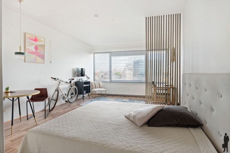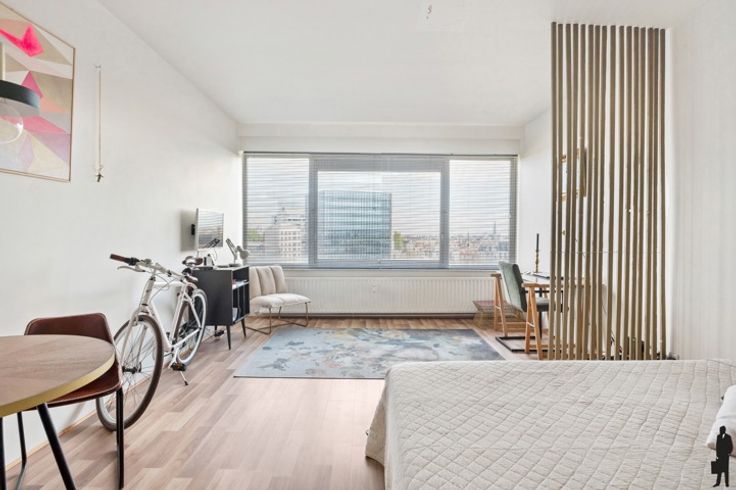 Gerenoveerd studio-appartement op toplocatie.  Deze studio is gelegen op de 8ste en tevens hoogste verdieping en vlakbij het station van Antwerpen Centraal. Gelegen in een mooie, brede en groene straat met parkeermogelijkheden. Een topligging dus! Door de grote raampartij is het voorzien van veel natuurlijke lichtinval. Er is een aparte inkomhal, en half open keuken, een mooie leefruimte en slaapkamer. Ook een ruime badkamer werd hier voorzien.  een Ideale investering voor wie openbaar vervoer en stadsleven graag combineert.  Bijzonderheden:  - Asbestveilig  - Gunstig EPC - Lage vaste kosten  - Lift conform