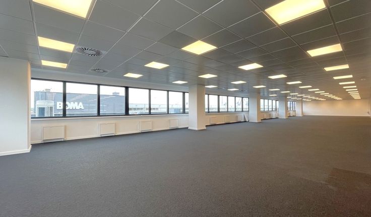 Specificaties: binnenzonwering, landscape ruimtes, verlaagd plafond, inbouw tl-armaturen, verhoogde vloer met vasttapijt, gemeenschappelijk en privatief sanitair, gemeenschappelijke keuken, verwarming en airco, badgesysteem, lift, onthaaldesk, broodjeszaak en ontspanningsruimte in het gebouw