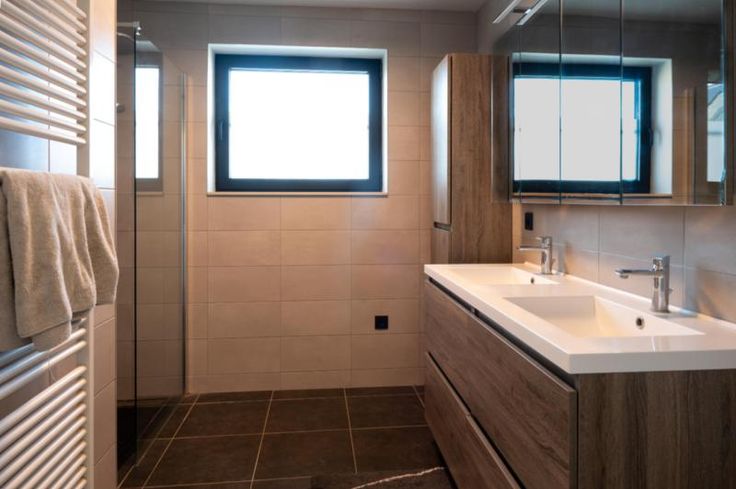 Eerste verdieping: drie slaapkamers, aparte toilet, badkamer uitgerust met een inloopdouche en dubbele wastafel.