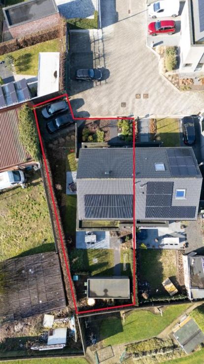 Het schuifraam geeft toegang tot een terras met gezellige tuin en tuinhuis. Aan de zijgevel is er nog een tweede terras om te kunnen genieten van de avondzon. Verder ook een uitweg naar de straat via een poortje en parking voor twee auto's met bovendien een laadpaal.