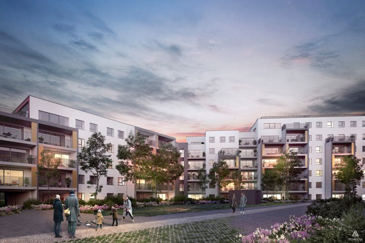 Appartement 2 chambres avec terrasse, parking et cave situé à L'Orée de Bozière, nouveau quartier proche de la gare et du centre-ville de Tournai.