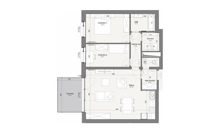 Appartement 2 chambres avec terrasse, parking et cave situé à L'Orée de Bozière, nouveau quartier proche de la gare et du centre-ville de Tournai. Descriptif général : Hall d'entrée, séjour avec cuisine ouverte, terrasse, 2 chambres, salle de bain avec baignoire, meuble vasque et miroir LED, buanderie, wc séparé et ascenseur Descriptif technique : toits végétalisés, châssis PVC double vitrage à coupure thermique, système de chauffage collectif avec chaudière gaz individuelle, radiateurs, thermostat, ventilation double flux avec récupération de chaleur, carrelage à choisir avec plinthes assorties sauf pour les chambres, faïences toute hauteur autour de la baignoire, détection incendie, vidéo-parlophonie, terrasse avec dalles sur plot Une cave et une place de parking comprises dans le prix - Local à vélos mis à disposition Ilot végétalisé et verger accessibles aux résidents PEB visé : A Livraison à l'acte Prix affichés hors frais - Vente sous Loi Breyne, régime des droits d'enregistrement (12,5 %) sur le terrain, éligible à 3 % sous conditions, et de la TVA sur la construction (21 %) Les surfaces indiquées ne sont pas des surfaces habitables mais des surfaces brutes, selon le code de mesurage appliqué en Belgique Renseignements et visite : Alexandra au +32 472 27 03 42 Publicité à caractère non contractuel et ne constituant pas une offre. Les propriétaires se réservent le droit de décision, d'acceptation ou non sur toute(s) offre(s) soumise(s) pour leur bien