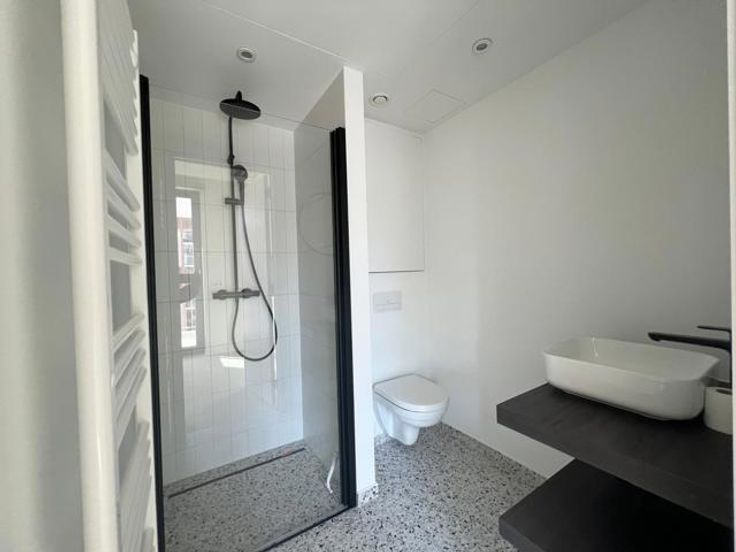 Situé au 1er étage, ce studio d’une superficie brute de ± 38 m² offre un espace de vie lumineux, agrémenté d’une cuisine ouverte entièrement équipée (four, réfrigérateur avec congélateur, cuisinière ainsi qu’un emplacement prévu pour un lave-vaisselle ou une machine à laver). Une salle de douche moderne complète l’ensemble.
