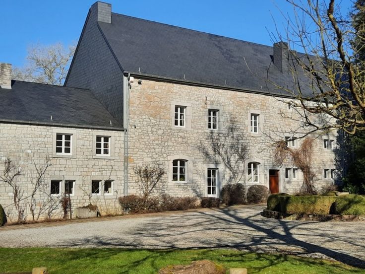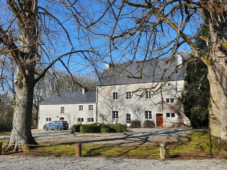 Région Durbuy - Elégante bâtisse en moellons sur 32ares bordant un ravissant château et son hameau. Soigneusement restauré par ses propriétaires, ce beau logis a tout de la maison de famille rêvée : un grand salon au rez-de-chaussée (pour les adultes), une belle pièce de vie à l'étage (pour les enfants), une vaste salle à manger pour de grandes tablées, une généreuse cuisine, 6 chambres, 4 salles de bains, un jardin de 32ares ouvert sur la campagne environnante. Côté balade : de nombreux chemins de randonnée vous permettront de sillonner cette belle région vallonnée du Condroz, terre des châteaux, des bois de feuillus, des ruisseaux, des tiges et des chavées. Et si l'inspiration vous manque devant les fourneaux ou que la quiétude vous pèse, direction Durbuy à 8km. Ne tardez pas, le lieu devrait en inspirer plus d'un. LJ Coomans - +32 476 432 681