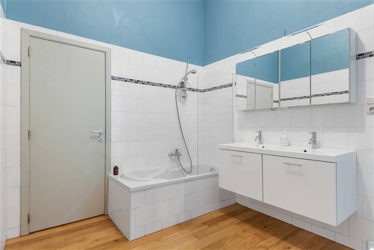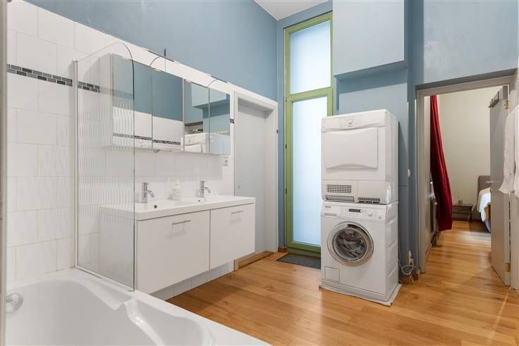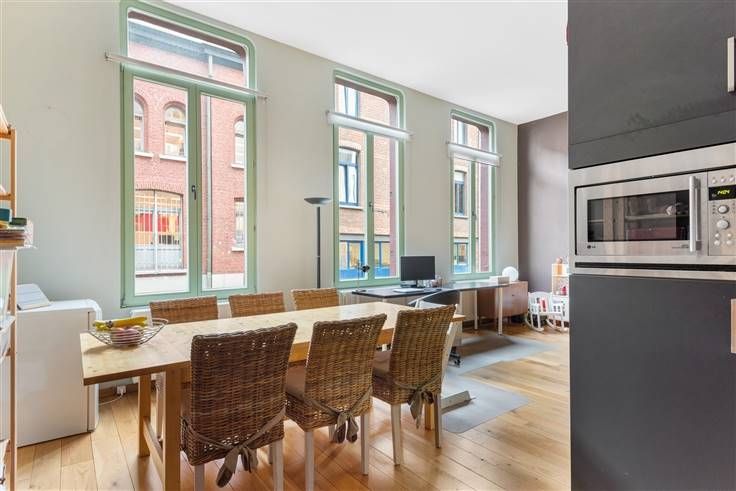 Rustig gelegen appartement op het Zuid. Indeling: inkomhall met gastentoilet, ruime leefkamer op mooie parketvloer (plafondhoogte 3,56m!) met deels open ingerichte keuken (vaatwas, combi-oven, ijskast, elektrische vuur en dampkap).  Badkamer met bad (D in B), dubbele lavabo en plaats voor wasmachine/droogkast.  Twee slaapkamers op parketvloer achteraan en terras. Extra's: mooi authentiek gebouw, zeer rustige locatie tussen Scheldekaaien en Kloosterstraat, op wandelafstand van centrum Antwerpen en gedempte zuiderdokken, recente CV ketel op gas (2018), EPC 169 kWh/m2, elektriciteit CONFORM, maandelijkse lasten ca. 57eur/mnd, videofonie, appartement beschikbaar ca. 01/10/2021, GEEN lift. Info/bezoek: 03/283 83 00 - noord@sinjoor.be