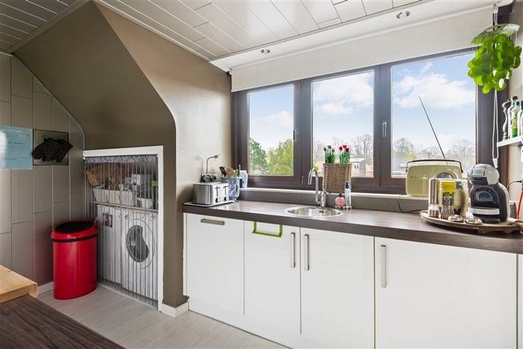 Ruim grotendeels gerenoveerd 2 à 3-slaapkamerappartement (ca. 100m2) in Ekerse dorpskern. Op wandelafstand van winkels, scholen en openbaar vervoer. Vlakbij natuurdomein d'Oude Landen en het Veltwijckpark. Indeling: inkomhal, zeer ruime leefkamer op parketlaminaat, volledig ingerichte keuken met alle toestellen en ruimte voor wasmachine/droogkast, hoofdslaapkamer met annex-badkamer (DinB), aparte kinderkamer, gastentoilet, via vaste trap naar geïsoleerde zolderruimte/hobbyruimte/3de slaapkamer,... Extra's: GOEDE EPC-SCORE VOOR DAKAPPARTEMENT, veel bergruimte/ingemaakte kasten, dakkapellen gerenoveerd, HR-condensatieketel,.... GARAGE eventueel bij te huren. Info/bezoek: 03/283 00 00 - noord@sinjoor.be .