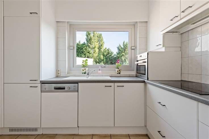 Centraal gelegen in rustige woonwijk nabij Oude Landen, fietsostrade en Veltwijcklaan. Indeling: inkomhall met gastentoilet, ruime leefkamer (ca. 39m2) in L- vorm met sierschouw op tegelvloer, ingerichte keuken met ingebouwde koelkast/diepvries. 2 slaapkamers achteraan op parketlaminaat (14/12m2), terrasje achteraan, badkamer met ligbad en lavabo, kelderberging. Afgesloten garagebox achteraan met elektriciteit mits supplement 20.000,00 euro Extra's: vernieuwd dak (2017) met 10cm isolatie, gunstig EPC 256kWh/m2, elektriciteit CONFORM, deels vernieuwd buitenschrijnwerk in alu, CV installatie (HR TOP-2015), asbestveilig!!! LAGE MAANDELIJKSE KOSTEN: 115,00 euro/maand incl. verwarming, water, blokpolis, minuterie,... Info/bezoek: 03/283 83 00 - noord@sinjoor.be