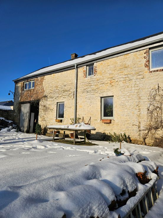 Cette belle maison, aménagée dans les années 70, est à rénover, à l’exception du toit et des châssis, remplacés en 2017. Elle comprend également une grange traversante, ainsi que trois places de parking devant la maison. Chauffage central mazout + poêle à bois, hall avec vestiaire, salon 22m2, Salle à manger séparée, grande cuisine lumineuse, 4 chambres + bureau, 2 salles de douche, grenier, grande remise/atelier jardin avec également le toit neuf. Une opportunité rare pour les amoureux de nature et de caractère !