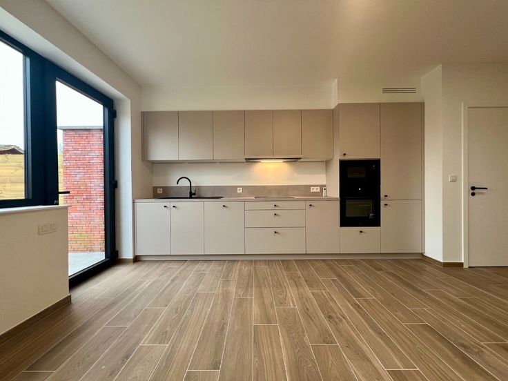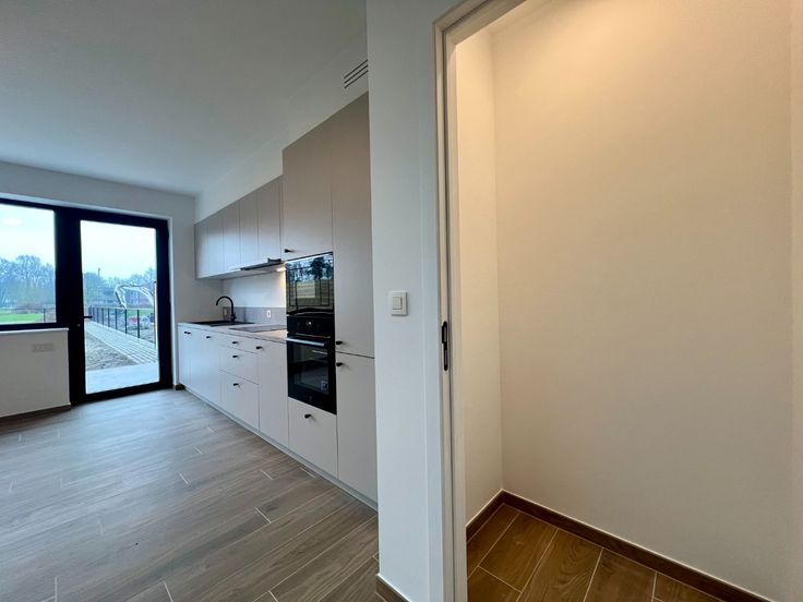 Bij binnenkomst op het gelijkvloers bevindt zich een inkomhal met een apart toilet. Vanuit de hal heeft u rechtstreeks toegang tot een lichtrijke en ruime woonkamer met open keuken, volledig uitgerust met moderne, hedendaagse toestellen. Aansluitend is er een praktische keukenberging.