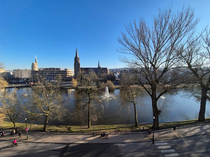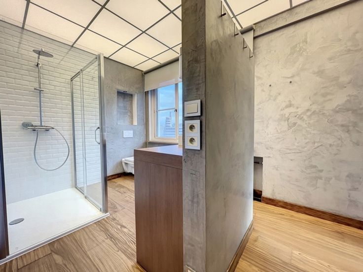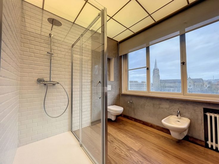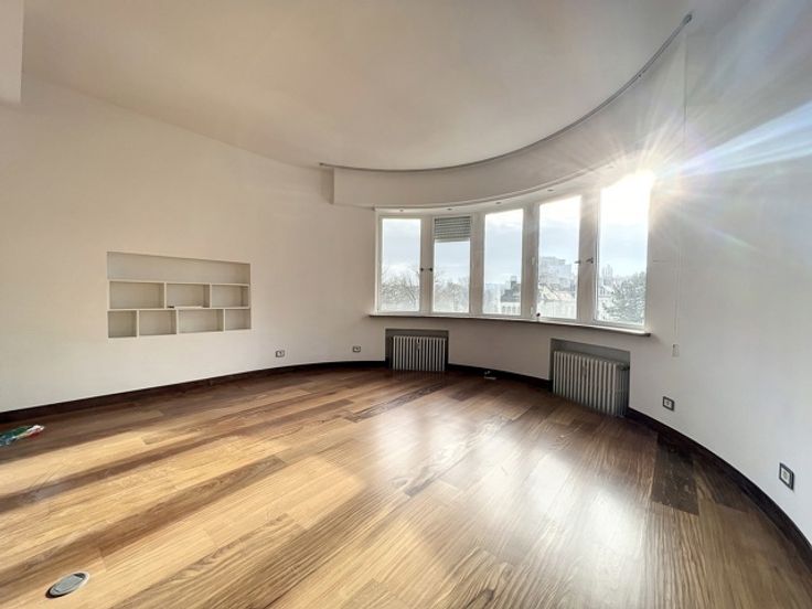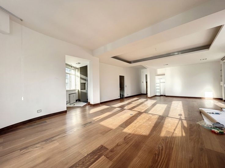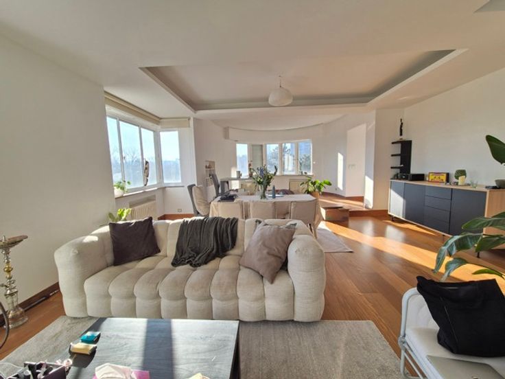 Face aux Etangs d'Ixelles, superbe appartement de caractère (design contemporain et italien) situé au 4ème étage d'un immeuble de coin de grand standing des années 1930. D'une superficie de +/- 150m², il se compose d'un hall d'entrée (lambris en marbre),vestiaire et wc, d'un superbe, vaste et lumineux living donnant accès à le terrasse avant (sud-est). Cuisine super-équipée de belle facture, chambre principale donnant sur les étangs avec spacieuse salle de douche en suite et très beau dressing. Donnant sur l'arrière : 1 chambre, salle de bains et seconde chambre d'enfant ou bureau ou dressing (accessible par la première précédente et salle de bains). Terrasse arrière. Vue à 180° allant de la place Flagey au Square de Biarritz, très beau parquet, 2ble vitrage, concierge dans l'immeuble, vue dégagée vers les étangs. Rénovation de qualité. A voir. Garage possible au Square de Biarritz en sus. Luxe et raffinement. A voir! Charges 400 € (communs dont concierge, chauffage central, eau) Ascenseur + ascenseur de service, etc. PEB : G