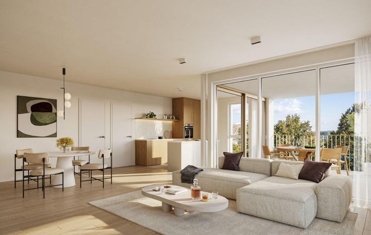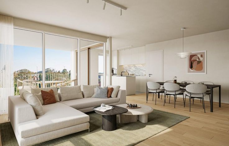 De ligging van het appartement is ideaal, met winkels, restaurants en openbaar vervoer op wandelafstand. Er is tevens een mogelijkheid tot aankoop van een ondergrondse staanplaats of garagebox en een kelderberging.