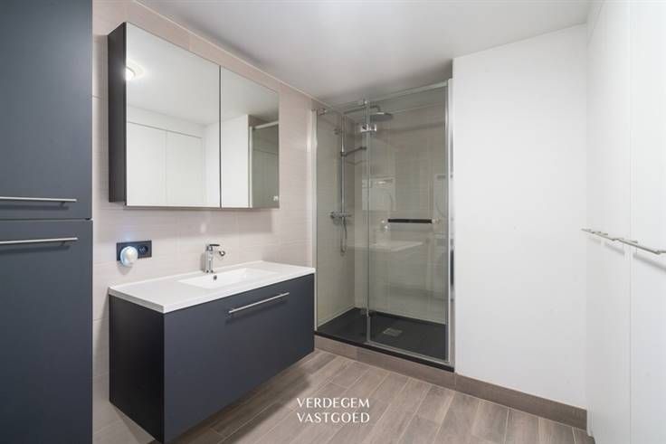 Verder op het gelijkvloers een knappe badkamer met walk-in douche.