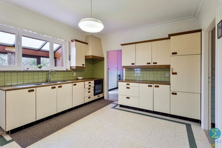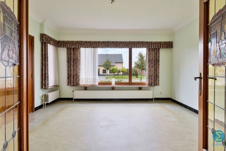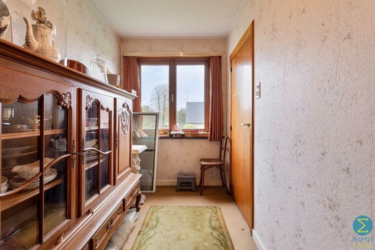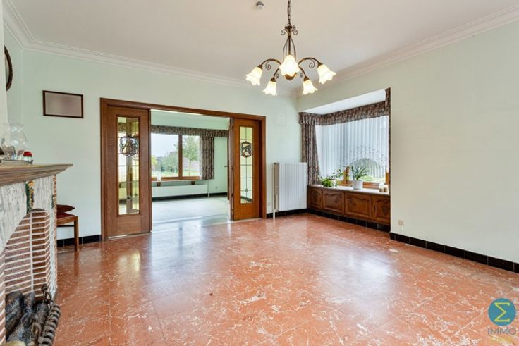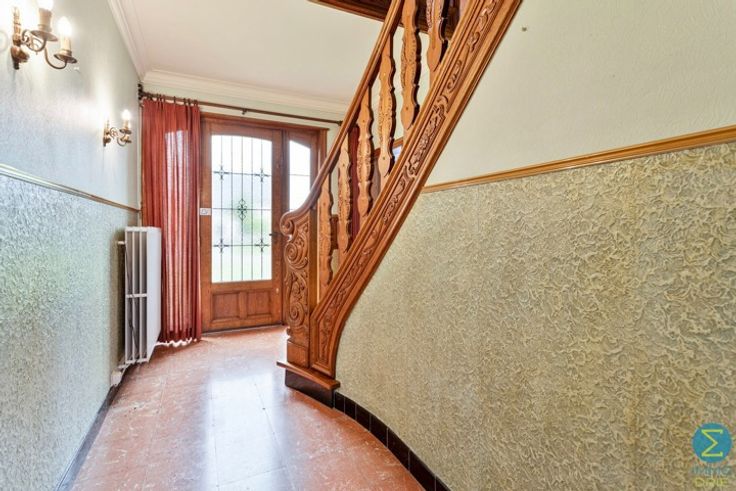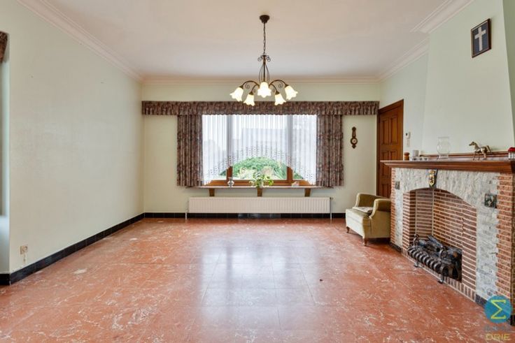 Deze te renoveren woning, gelegen op een ruim perceel van 1773 m², biedt tal van mogelijkheden voor renovatie en personalisatie. Bij binnenkomst wordt u verwelkomd in de inkomhal met een elegante houten trap die naar de bovenverdieping leidt. Deze biedt tevens toegang tot de ruime en lichtrijke woonkamer met sier openhaard.