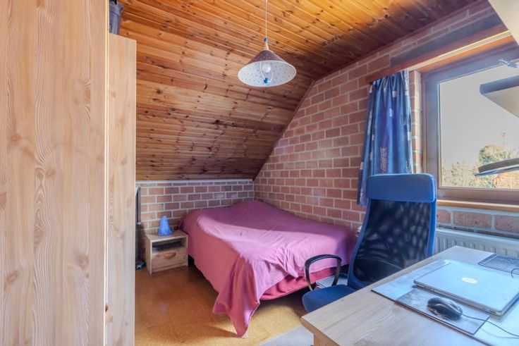 Verdieping: 3 slaapkamers; apart toilet; badkamer bevat lavabo en douche in bad; polyvalente kamer / mogelijkheid tot 4e slaapkamer, welke toegang biedt tot de zolder.
