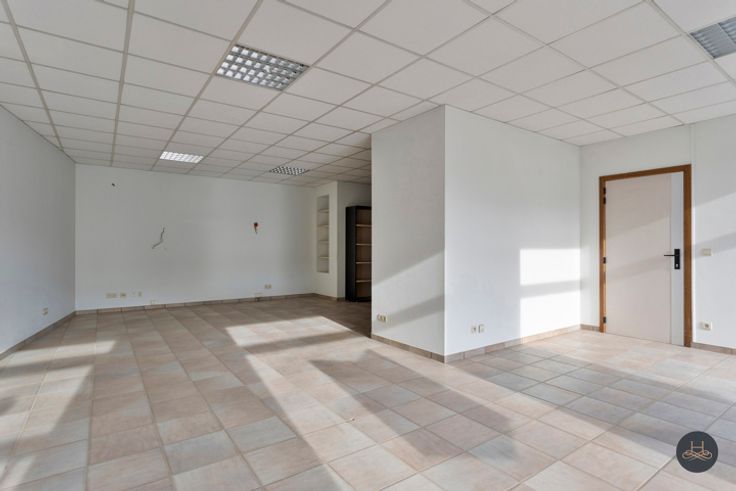 INDELING: Open kantoorruimte of handelsruimte (+- 79 m²), 2 aparte bureelruimtes (+- 13,55 m² en +-14,31 m²) , keuken, sas, heren- en damestoilet, verwarmingslokaal, berging en een ruim terras achteraan het gebouw (54 m²).