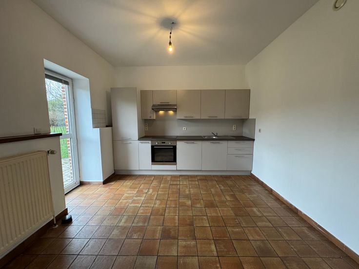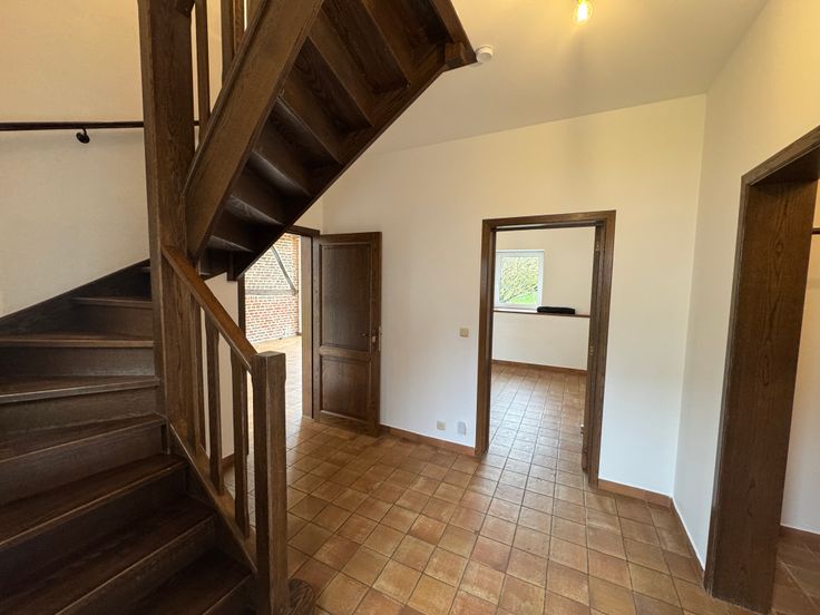 Rdc : Hall d’entrée, living, cuisine, terrasse et jardin privatif.