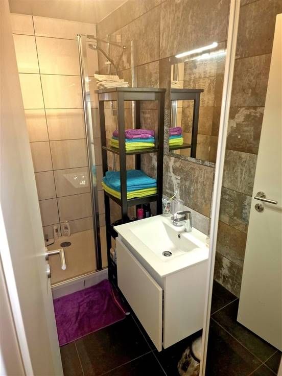 Sorry er is geen nederlandse vertaling beschikbaar. Très bel appartement, situé au 1er étage sans ascenseur d'une petite résidence avec vue sur la rue principale de Bastogne. Il se compose d'un hall, espace à vivre avec cuisine équipée, 1 chambre à coucher, salle de douche, buanderie et wc séparé. Petite cave. Résidence sans ascenseur. Forfait de 10€ pour l'électricité des communs. Cour à l'intérieur du bâtiment. Possibilité de se garer devant le bâtiment. Animaux non souhaités.