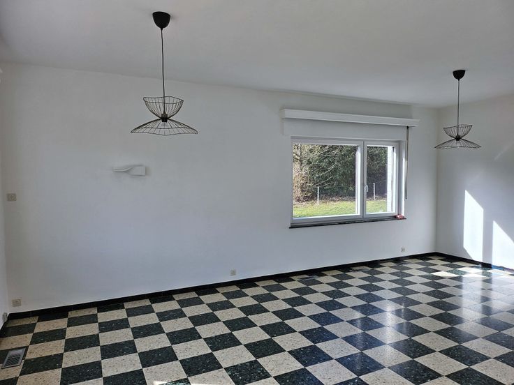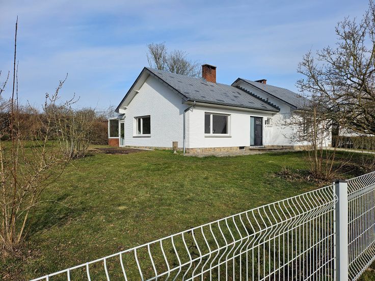 Dans le village de Marchin, bungalow 2 chambres au fond d'une impasse. Le bâtiment a été rénové : nouvelle chaudière, nouvelle isolation, nouveaux chassis DV, nouvelle cuisine équipée (four, hotte, frigo, LV.)., nouveau meuble de salle de bains/w-c, peinture neuve. Composée de 2Ch, 1SDB, W-C, une buanderie, une cuisine, une salle à manger/salon, une véranda, caves, jardin, remise, garage. Chauffage central au mazout + cassette à bois B&G. Electricité conforme. 2 mois de caution. Visite sur RDV. Entretien annuel de chaudière et décalcarisateur compris dans le loyer.