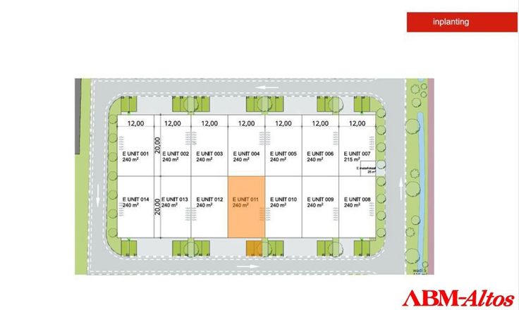 Deze KMO-Unit heeft een oppervlakte van 240m2 met een sectionaalpoort met een breedte van 4m en hoogte 4,5m.