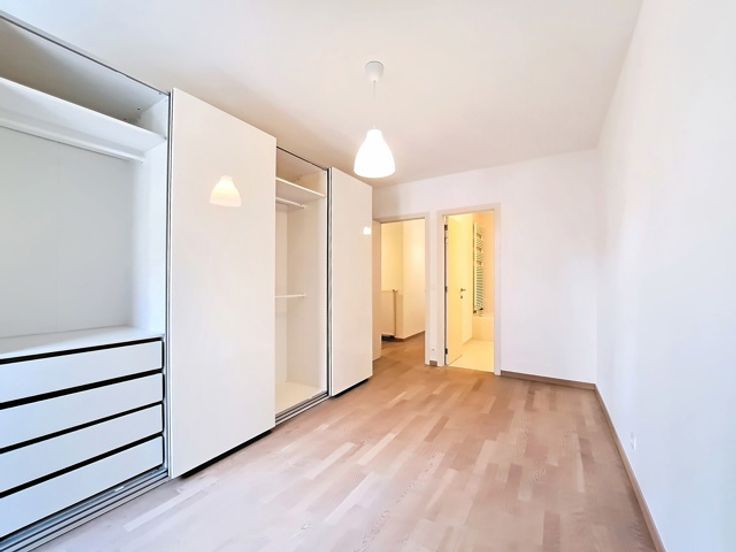 Het appartement heeft twee slaapkamers: een van 14 m² en de andere van 10 m², die beide een comfortabele leefruimte bieden. Er is ook een badkamer van 5 m² en een doucheruimte van 4 m², wat zorgt voor optimaal comfort voor de bewoners.