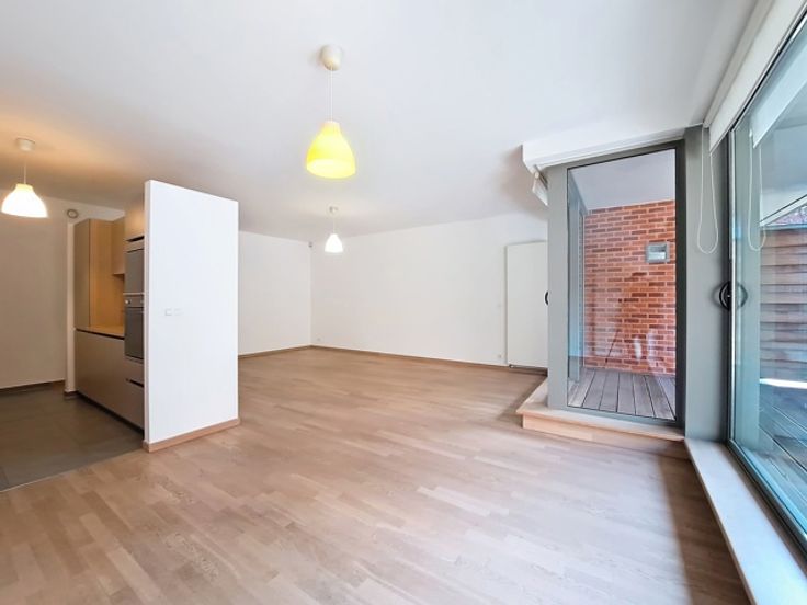 Dit appartement van +-100m² bestaat uit een ruime woonkamer van 45 m², die een lichte en vriendelijke leefruimte biedt. De ingerichte keuken van 6,5 m² is functioneel en modern.