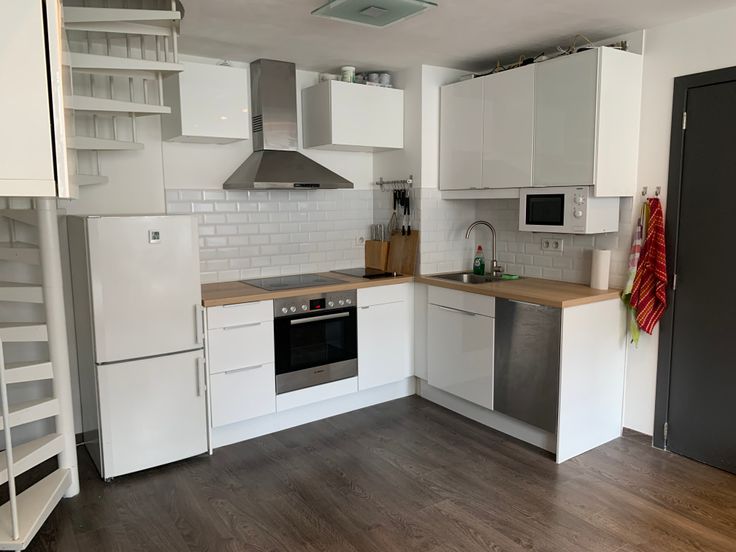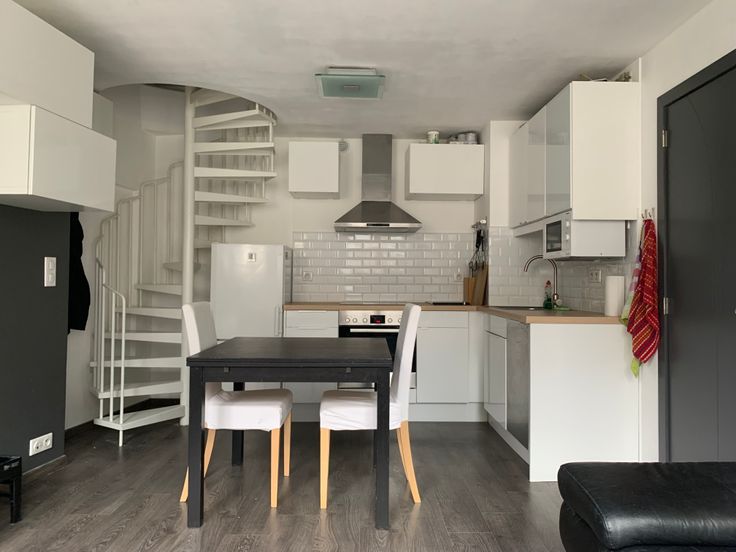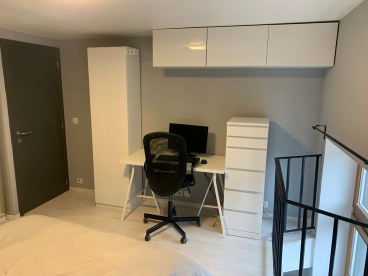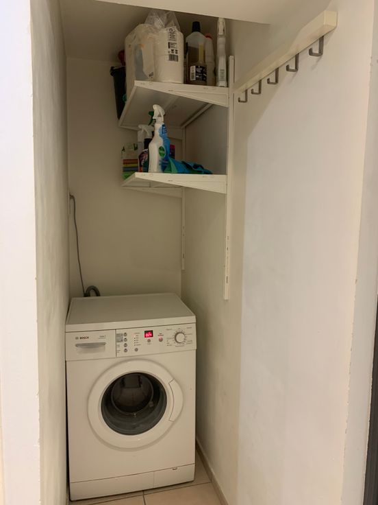 Le bas se compose du séjour et d’une cuisine ouverte entièrement équipée (à l’exception du frigo). Le haut se compose de la chambre et la salle de bain équipée d’une baignoire avec douche de tête, ws et coin buanderie pour la machine à laver ainsi que des rangements.