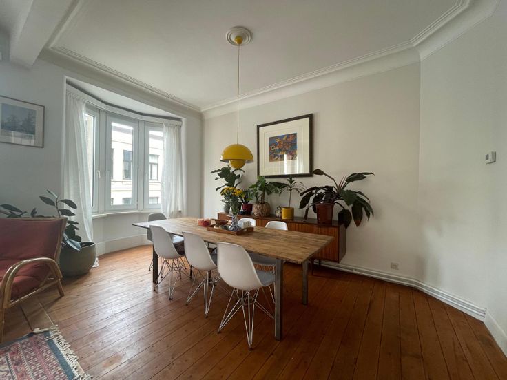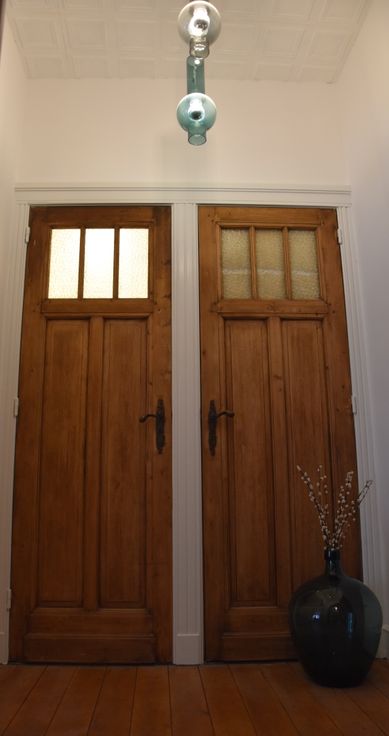 - Hoge plafonds en authentieke elementen, waaronder een mooie plankenvloer, kroonlijsten en houten deuren.