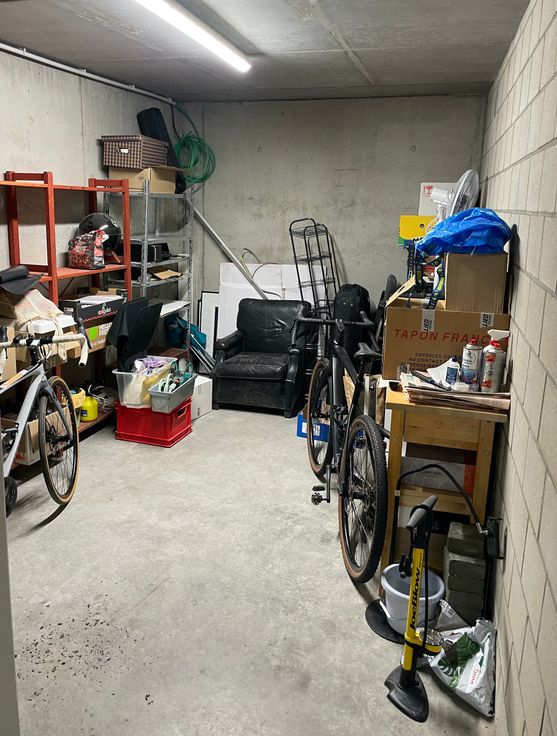 In de garage 2 overdekte autostaanplaatsen + 4 staanplaatsen voor fietsen + zeer ruime afgesloten berging