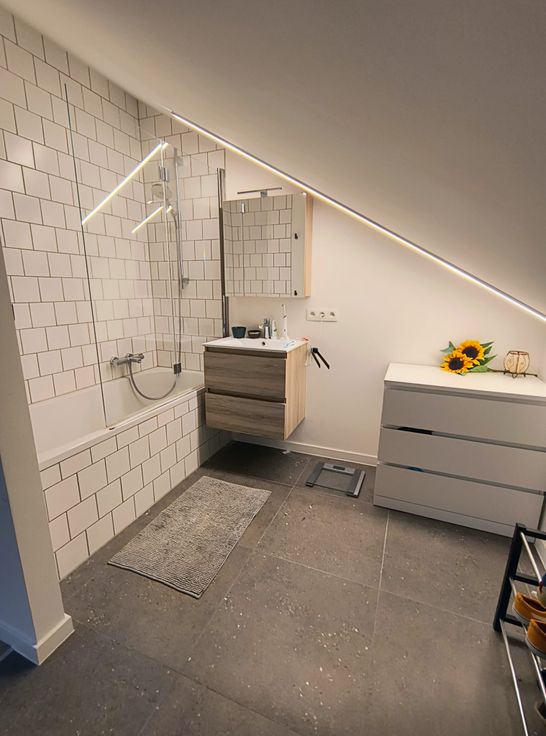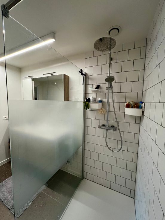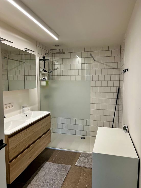 Vanuit de hal heb je toegang tot slaapkamer 1 en 2, met rechtover de badkamer met inloopdouche en dubbele wastafel.