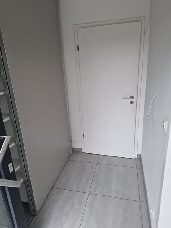Benedenverdieping met inkomhal en 1 grote leefruimte (werkplek - keuken en woonruimte) plus berging. Tuin en terras met garage.
