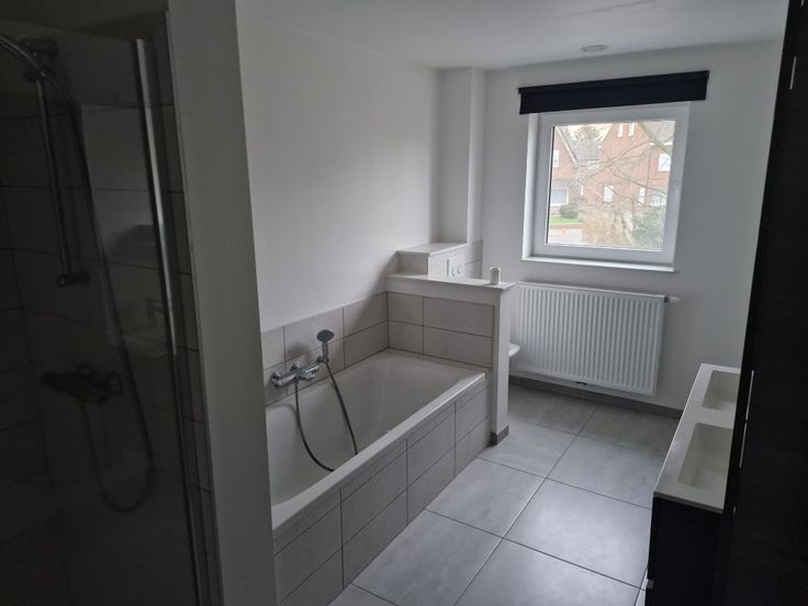 1e verdieping bestaat uit grote en kleine slaapkamer plus uitgebreide badkamer (met bad + douche).