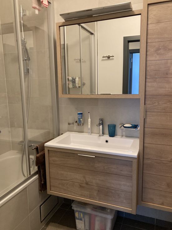 Bij het appartement hoort ook berging in de kelder van het gebouw en een parkeerplaats in de ondergrondse garage (inbegrepen in de huurprijs). Hier zijn er ook fietsbergingen voorzien waar je je fietsen veilig kan stallen.
