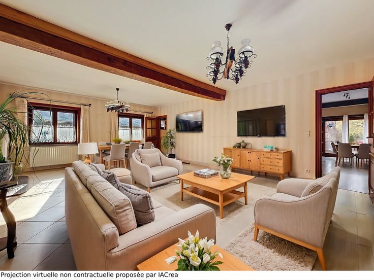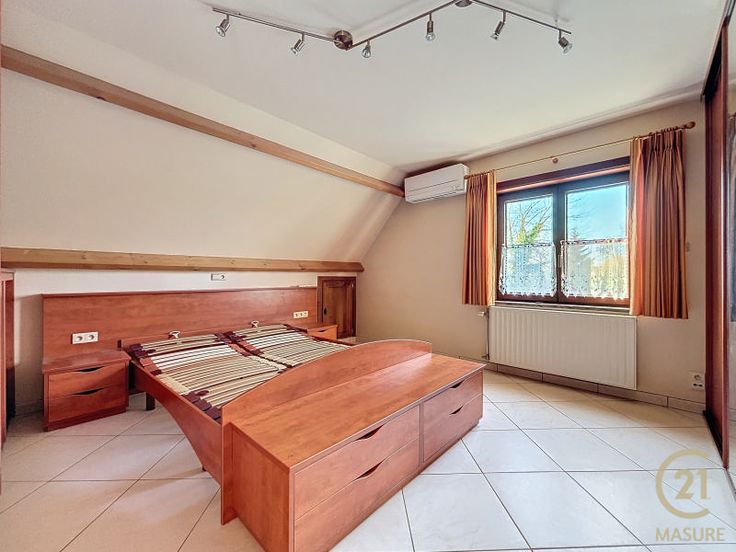Dakwerk: Dakpannen . Vensters: Hout . Andere uitrusting: Blinden, Waterafvoersystemen, Dubbele beglazing, Schoorsteen, Apparaat om water te verzachten . : Total énergie primaire: 46999 kwh/an, : 254 Kwh, EPC certificaat nb., : 55 Kg Co2m²an . Elektrische uitrusting: Fotovoltaïsche panelen, Elektrische blinden, Thermostaat, Elektrische garagedeur, Elektrisch portaal, Tuin verlichting, Alarm . Uitrusting van keuken: Keuken meubelen, Vaatwasmachine, Wasemkap, Koelkast, Oven, Keramisch kookvlak fornhuis, Diepvrieskast . Kelderverdieping: : 21 m², Kelder: 61 m² . Eerste verdieping: Badkamer(s): 15 m², Trapportaal: 4 m², Slaapkamer: 15 m², Slaapkamer: 21 m² . Gelijkvloers: : 2 m², : 1 m², : 24 m², Woonkamer: 39 m², Inkomhal: 13 m², Keuke