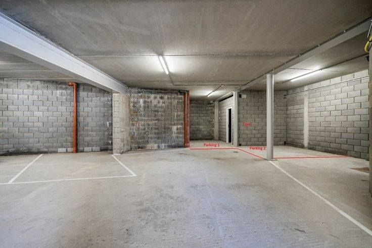 Garage comprenant 2 places de parking pour une petite et voiture de taille moyenne et une cave privative.