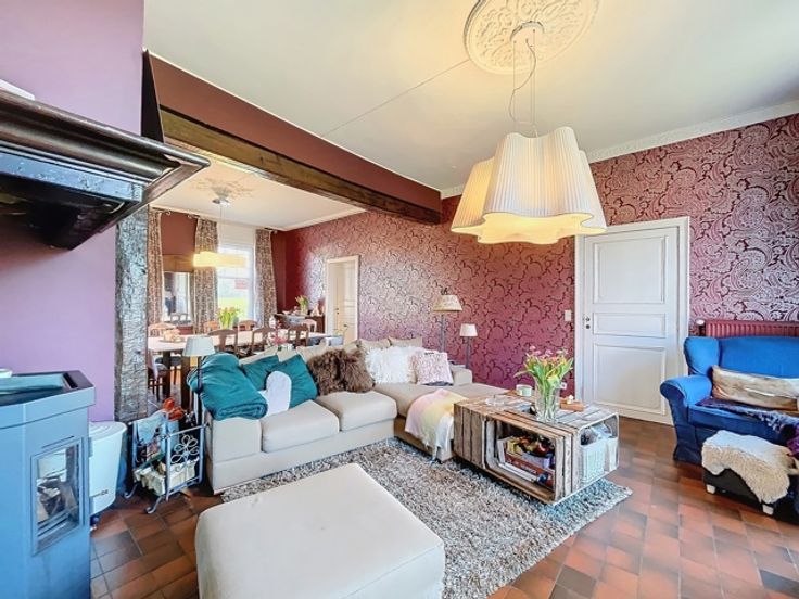 Bekijk de hometourvideo en download alle documenten voor dit huis, u te koop aangeboden via www.woppah.be/te-koop. Karaktervol boerenburgerhuis met rijke geschiedenis: In het schilderachtige Parike, de kleinste deelgemeente van Brakel, staat deze unieke open bebouwing te koop. Dit charmante huis, gebouwd rond 1870, deed vroeger dienst als café ‘In de Congo’ en als dokterspraktijk. Het perceel van 506 m² herbergt een woning met een royale bewoonbare oppervlakte van 246 m². De inkomhal met wachtruimte en apart toilet leidt naar een open leefruimte met living en eetplaats. De hoge plafonds met originele sierlijsten, mouluren en rosetten benadrukken de historische grandeur. De keuken biedt een prachtig zicht op de omliggende velden en biedt toegang tot een ruime kelder. Verder is er een bureau en zijn er drie ruime slaapkamers. De zolderverdieping biedt uitbreidingsmogelijkheden voor twee extra kamers. Buiten geniet je van een open tuin met terras en een vrijstaande garage. De ligging is ideaal: rustig en midden in de Vlaamse Ardennen, een geliefde regio voor wielerliefhebbers. Op wandelafstand bevinden zich scholen en openbaar vervoer, terwijl het centrum van Brakel met winkels op slechts 4 km ligt. Geraardsbergen, met zijn culturele en sportfaciliteiten, is vlot bereikbaar op 6 km. Dit bijzondere huis in de Hollebeekstraat staat te koop voor wie charme, ruimte en een rustige ligging zoekt. Mis deze kans niet en ontdek zelf de troeven van deze woning, te koop in Brakel!