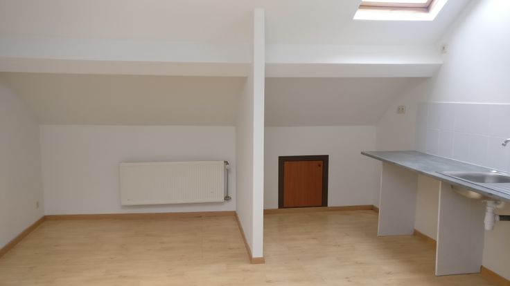 > Le 4ème étage se compose d’une chambre mansardée de 22 m², d’une sdb avec baignoire et wc, mais aussi d’un coin cuisine avec évier et taque de cuisson.