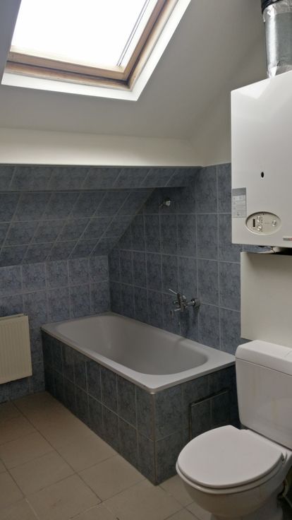 On y trouve également une chambre de 18 m², ainsi qu’une salle de bain avec baignoire, wc et un emplacement pour machine à laver.