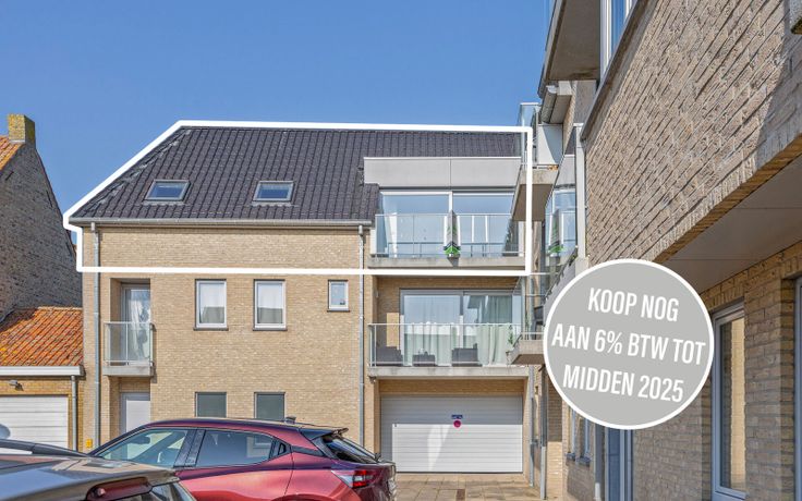 Ontdek dit prachtige nieuwbouwappartement te koop op een uitstekende locatie in Diksmuide.  Bij binnenkomst wordt u verwelkomd in een lichte inkom met een handig toilet, waardoor gasten gemakkelijk kunnen worden ontvangen. De open keuken en woonkamer van samen 45 m² vormen het hart van het appartement, waar u kunt genieten van gezellige momenten met vrienden en familie. De keuken bevat allemaal gloednieuwe inbouwtoestellen: keramische kookplaat, koelkast, oven, vaatwasmachine en microgolf. Een handige berging van 7 m² met aansluiting voor een wasmachine zorgt voor extra opslagruimte en praktisch gemak in het dagelijks leven. De twee slaapkamers, respectievelijk 6 m² en 14 m² groot, bieden een ruimte voor rust en ontspanning. De tweede slaapkamer kan ook als bureauruimte worden ingedeeld. De badkamer, met een douche, is smaakvol ontworpen en biedt een oase van verfrissing na een drukke dag. Een extra apart toilet voegt nog meer comfort toe aan dit appartement. Last but not least, geniet van de zon op het zuidoost-georiënteerde terras, waar u kunt ontspannen en genieten van het prachtige uitzicht. Op het gelijkvloers bevindt zich een fietsenberging met stopcontact om een elektrische fiets op te laden. Grijp uw kans om nog tot en met juni 2025 dit volledig instapklaar appartement aan 6% btw te kopen.  Deze eigendom is bovendien ook uitermate interessant als beleggingsvastgoed. Troeven:  Volledig opgeleverd nieuwbouwappartement; Mogelijkheid om aa... Renovatieplicht: nee