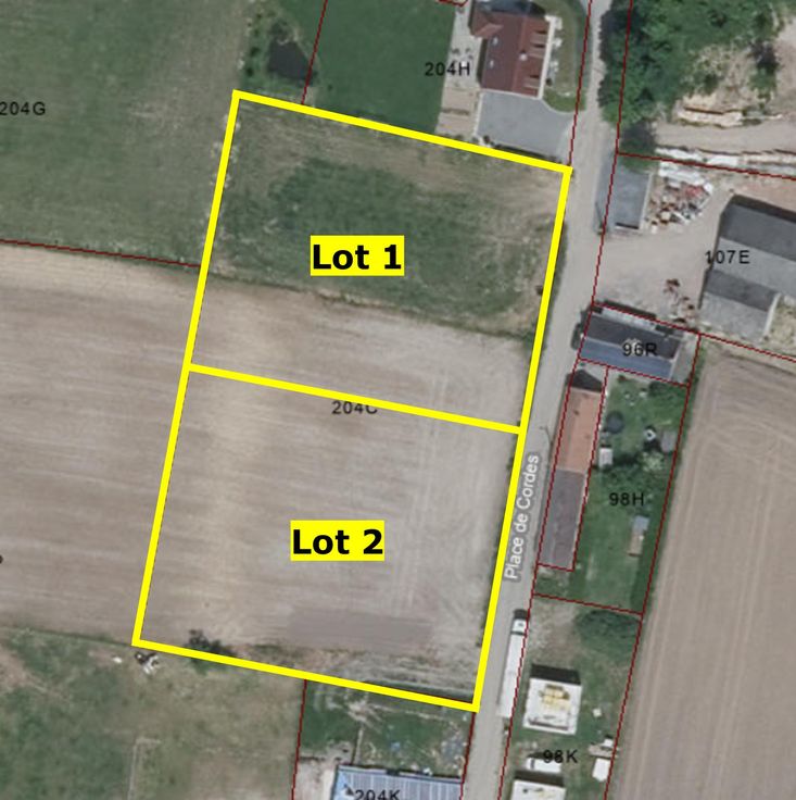 BOUWGROND MET WESTELIJKE ORIËNTATIE GELEGEN IN EEN DOODLOPENDE STRAAT TE CORDES (FRASNES LEZ ANVAING). Gelegen in woonzone met landelijk karakter. Geen bouwverplichting!! 2 loten beschikbaar, ieder lot is 25a 71ca groot met elk een straatbreedte van 45m (=samen 90m straatbreedte met totaal oppervlakte van 51a 42ca). Momenteel zijn de bouwgronden nog niet uitgerust (bouwvergunning en nutsvoorzieningen ten laste van de koper). €165.000 per lot/bouwgrond. VOOR MEER INFO EN/OF BEZOEK BEL 0488/38 90 79