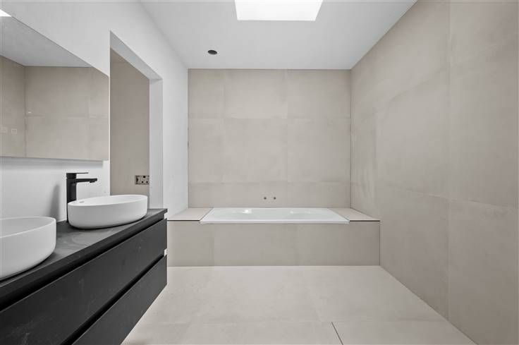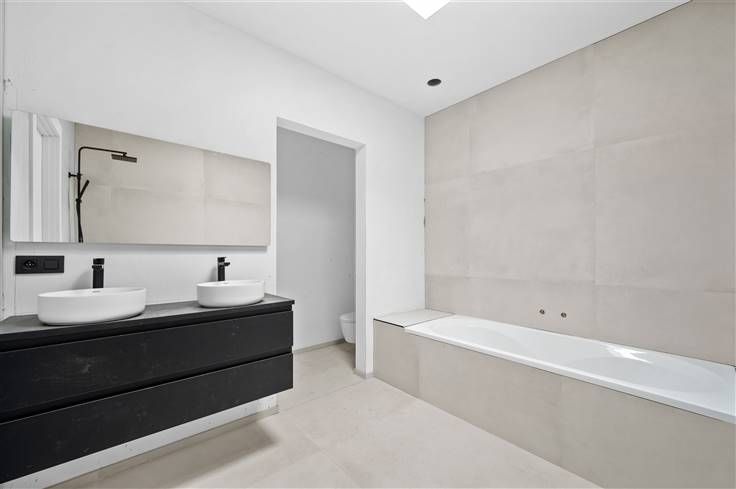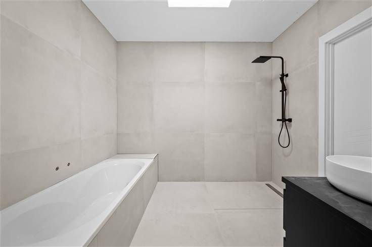 Zoals de naam van de Heidestraat al suggereert, woont u hier in een landelijke omgeving, met paardenweides en velden. U geniet van een totaal afgewerkte woning, inclusief opritten en terrassen in waterdoorlatende klinkers, tuinomheining, zonnepanelen, overal vloerverwarming, warmtepomp (Viessmann), etc. Dit impliceert dat de woning met gelijmde lichte gevelsteen, voorzien is van zeer dikke isolatielagen (16cm in muur en dak). Het zwarte alu-buitenschrijnwerk met grote raampartijen, is voorzien van driedubbel glas. Bezoekers worden aangenaam verrast door de ruime plafondhoogte op het gelijkvloers (2,80m) en op de bovenverdieping (2,70m). Qua stijlelementen is gedacht aan accenten zoals een witte trapbekleding in composietmateriaal, tegels van 1m bij 1m en afgewerkte deuren met zwarte klinken. In open keuken met eiland, is veel ruimte beschikbaar en een resem kwaliteitsapparaten voorzien: dampkap met onderafzuiging, oven, microgolf, vaatwasser, kookplaat en grote koelkast. Van drie grote kamers valt de identieke grootte op, terwijl de master bedroom zich onderscheidt door een en suite badkamer, met inloopdouche (glazen wand), lavabo, duobad en toilet. In de andere badkamer, spotten we een inloopdouche met regenfunctie en een dubbele lavabocombinatie met spiegel. Voor de volledigheid vermelden we nog de twee bergingen/wasplaatsen, waarvan één met uitgietbak. Afgezien van de parkeerruimte in de zeer diepe garage, kan u nog 2 à 3 auto's voor de woning parkeren.