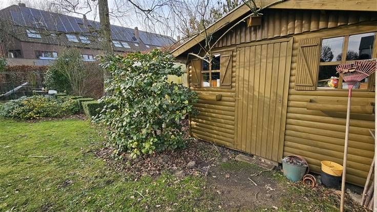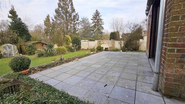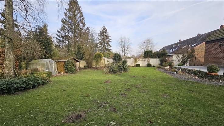 Rez: Hall d'entrée, WC séparé, salle de douche (actuellement utilisé comme cellier), cuisine équipée, living, buanderie, garage, beau jardin, terrasse.