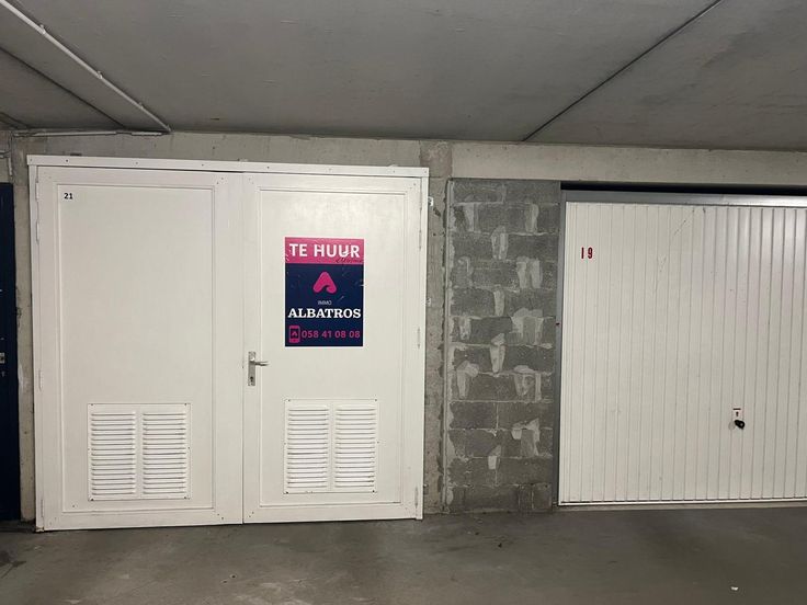 Ondergrondse garagebox gelegen in kelderverdieping van residentie M. Calmeyn.  Renovatieplicht: onbekend