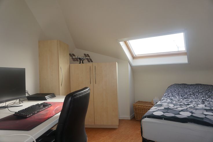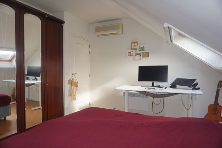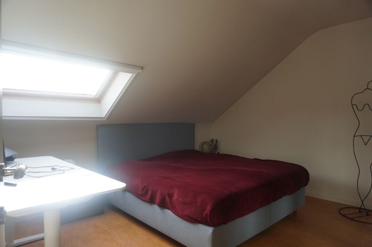 Indeling op de tweede verdieping: 2 slaapkamers met ingebouwde kasten en airco, badkamer, nachthal, toilet, living met aparte bureelruimte. Elektrische verwarming (E-panels). Ondergrondse autostandplaats.