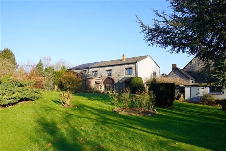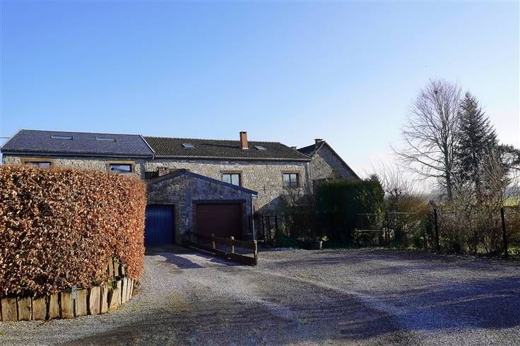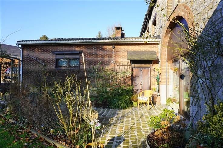 Mooi lokaal stenen huis dat deel uitmaakt van een oude boerderij met 270m² woonoppervlakte, bestaande uit een inkomhal, een grote woonkamer met open haard, een ingerichte keuken, een bijkeuken, 3 slaapkamers, een bureau, een badkamer, een inrichtbare zolder, een garage, buitenparkeerplaatsen, een terras en een grote tuin op het zuiden.