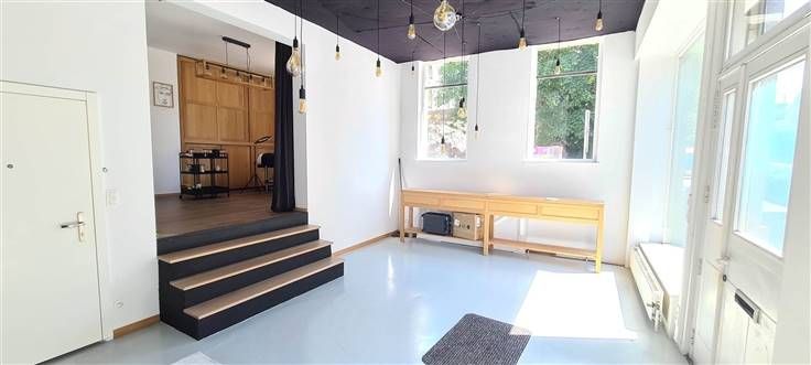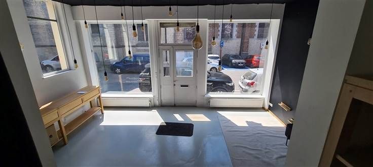 BEGANE GROND: Twee mooie kamers, erg mooie etalage, wc.+/55m²