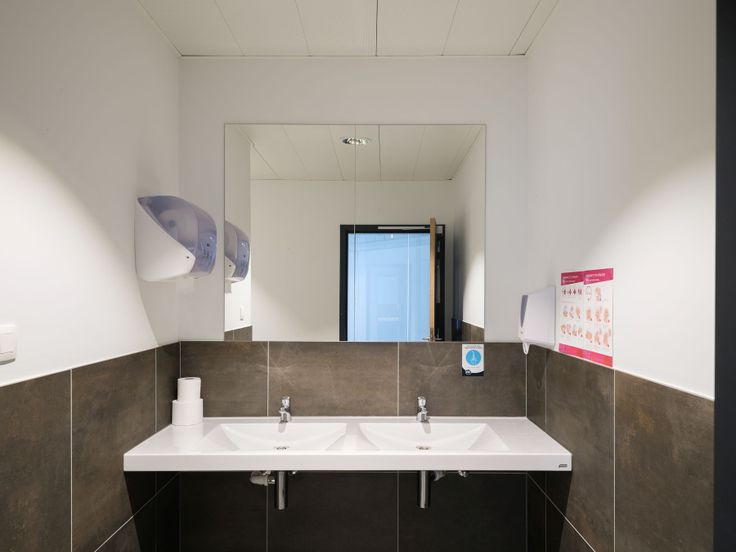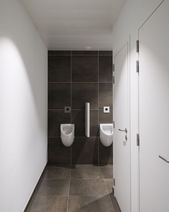 De kantoorruimte beschikt over twee sanitaire blokken voor heren en één sanitair blok voor dames. Autostaanplaatsen incl. laadpaal optioneel beschikbaar
