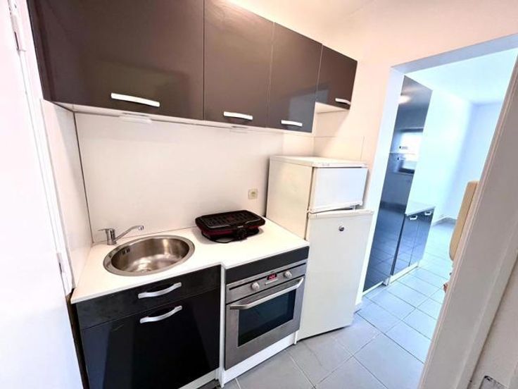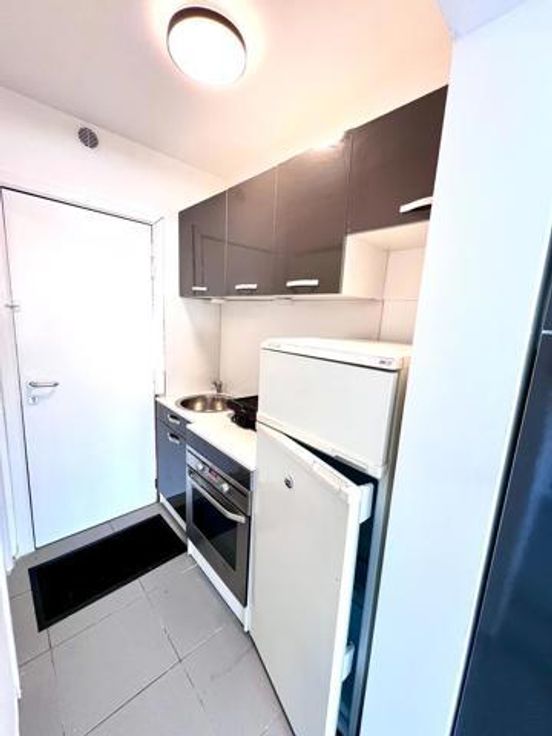 Kleine, eenvoudige studio (45 m2) met een woonkamer, semi-ingerichte keuken en gerenoveerde doucheruimte. Momenteel verhuurd. Rustige straat dichtbij openbaar vervoer (treinen, trams en bussen) en winkels. CEREA ligt op 200 meter afstand.