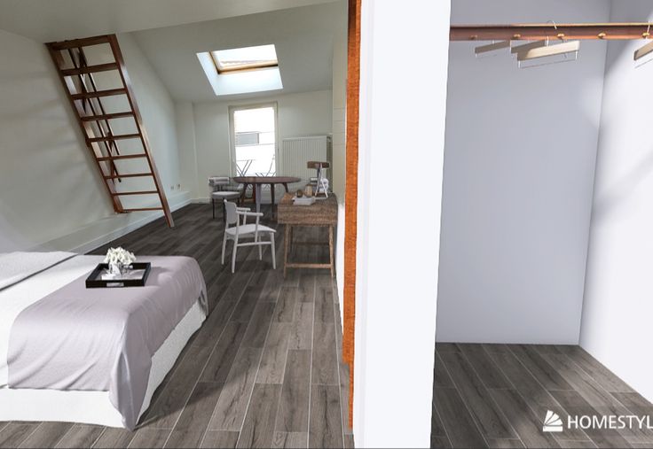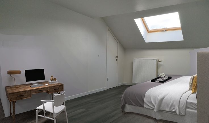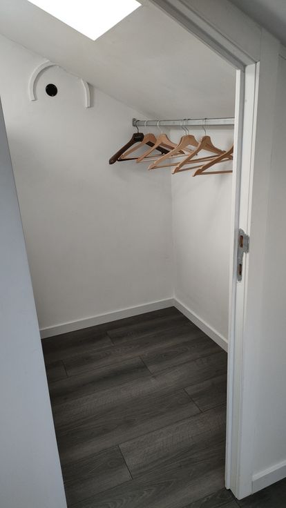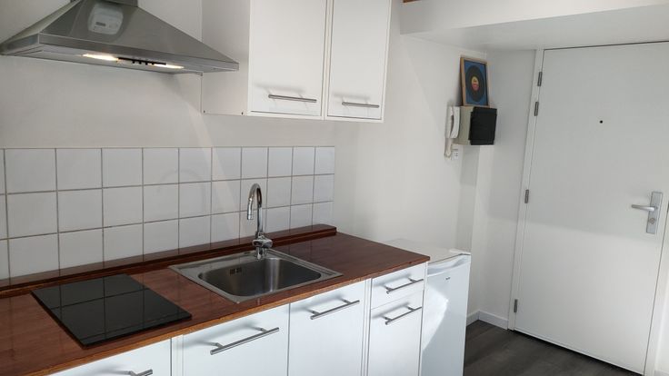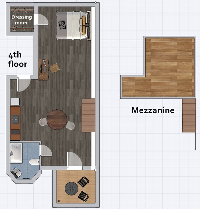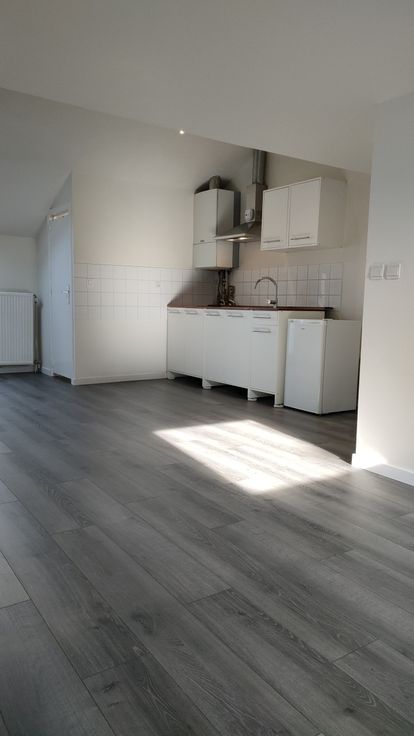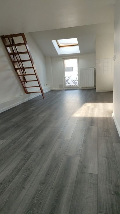 Licht en aangenaam appartement 55 m2 met mezzanine en terras. Woonkamer met keuken. Badkamer WC. 4de verdieping zonder lift.